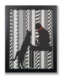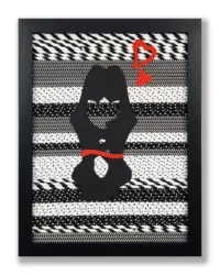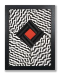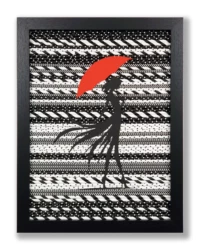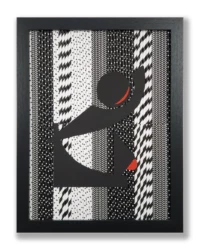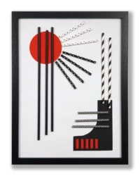 Ich erschaffe einzigartige Bildkompositionen aus Papierrollen – darstellende Silhouetten, ergänzt durch ein markantes rotes Element.